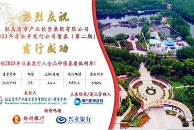 2023年5.5億元私募債(第二期)成功發(fā)行面對復(fù)雜嚴峻的經(jīng)濟形勢,駐馬店市產(chǎn)業(yè)投資集團有限公司(以下簡稱“市產(chǎn)業(yè)集團”)緊緊圍繞市委、市政府戰(zhàn)略部署,5月30日,市產(chǎn)業(yè)集團2023年非公開發(fā)行公司債券(第二期)成功發(fā)行。此次債券發(fā)行規(guī)模5.5億元,期限2年,票面利率5.96%,創(chuàng)市產(chǎn)業(yè)集團2023年以來全品種債券…