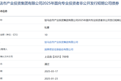 駐馬店產(chǎn)投集團(tuán)擬發(fā)行10億元短期公司債