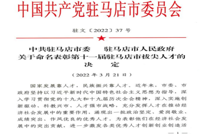市產(chǎn)業(yè)集團(tuán)賴新河同志入選駐馬店市第十一屆拔尖人才